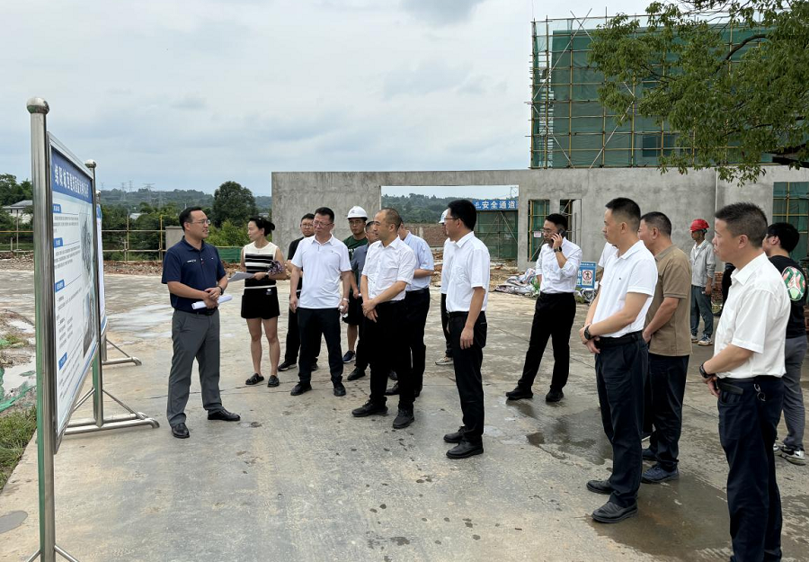 7月4日,副市長黃波一行調(diào)研綿陽城西建筑固廢消納場項目建設(shè)情況。區(qū)委書記胡斌、區(qū)委常委、副區(qū)長劉軍、區(qū)委辦主任姜偉、公司支部書記、董事長袁波、副總經(jīng)理楊婷婷參加。
