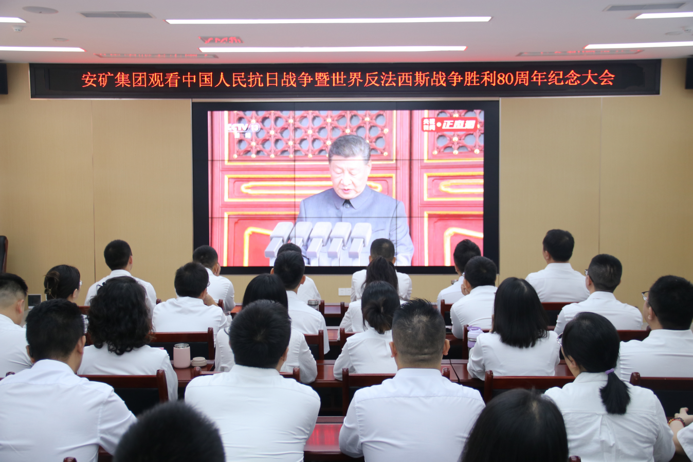 9月3日,集團組織全體黨員干部職工收看中國人民抗日戰(zhàn)爭暨世界反法西斯戰(zhàn)爭勝利80周年紀(jì)念大會。(素材來源:黨群行政中心 魏榮)
