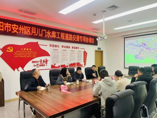 11月27日,集團(tuán)副總經(jīng)理馮文生組織召開安州區(qū)月兒門水庫工程道路交通專項協(xié)調(diào)會。(素材來源:項目安環(huán)中心 張瑞桃)